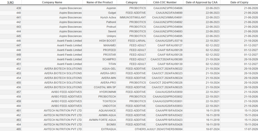 India Registered Shrimp Feeds and Other Antibiotics Free Inputs List (December 2024)